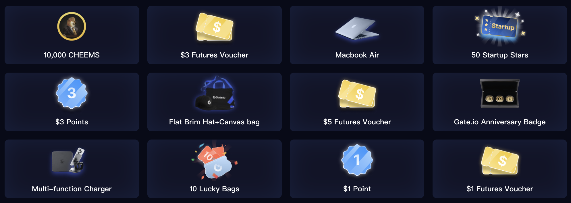 1.Les prix de l'événement incluent un MacBook Air, des articles exclusifs, des Startup Stars, un bon à terme, des points et des sacs chanceux.