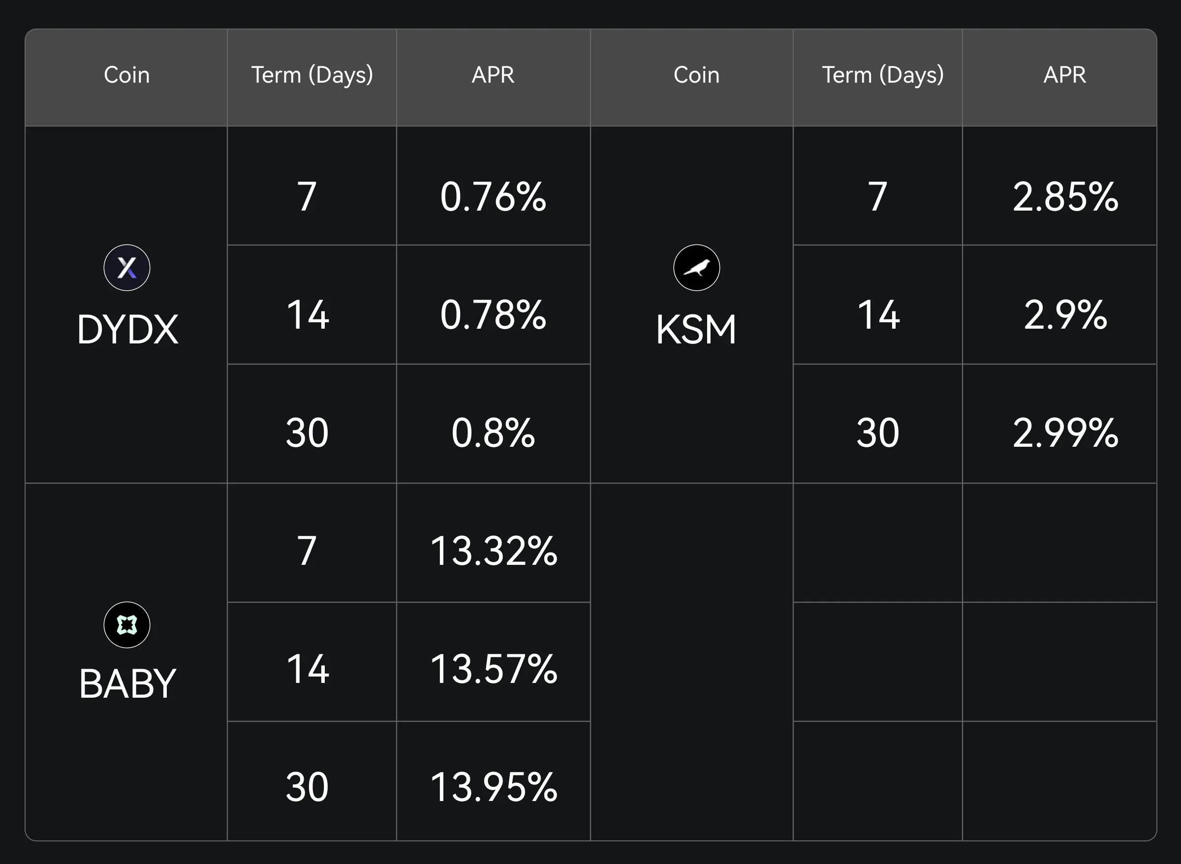 Gate Simple Earn telah resmi meluncurkan produk jangka waktu tetap DYDX, KSM, dan BABY, menawarkan periode penguncian fleksibel selama 7, 14, dan 30 hari. Jangan ketinggalan—berlangganan sekarang.