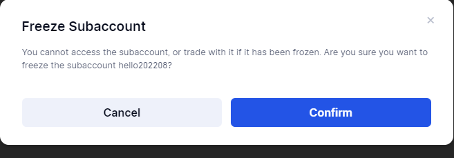 4.Di Sub-akun,pengguna dapat mengeklik “Kelola”-“Bekukan/Aktifkan” untuk membekukan/mengaktifkan sub-akun yang dikelola setelah lolos Autentikasi 2FA。
