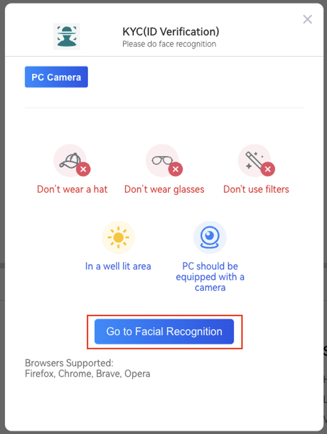 Having completed the above process, you will be redirected to the face verification page. Please read the notice carefully before clicking on the "Go to Facial Recognition" button.