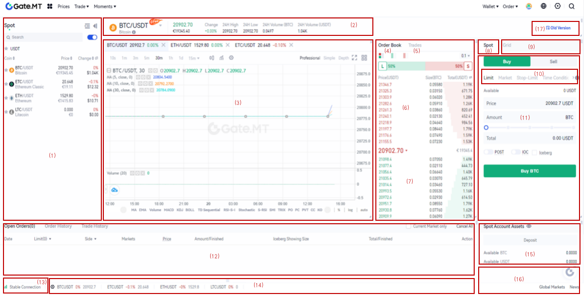 (12)– Order Section: “Open Orders”, “Order History”, “Trade History”, are included in this section. You can check the details of all your orders here.