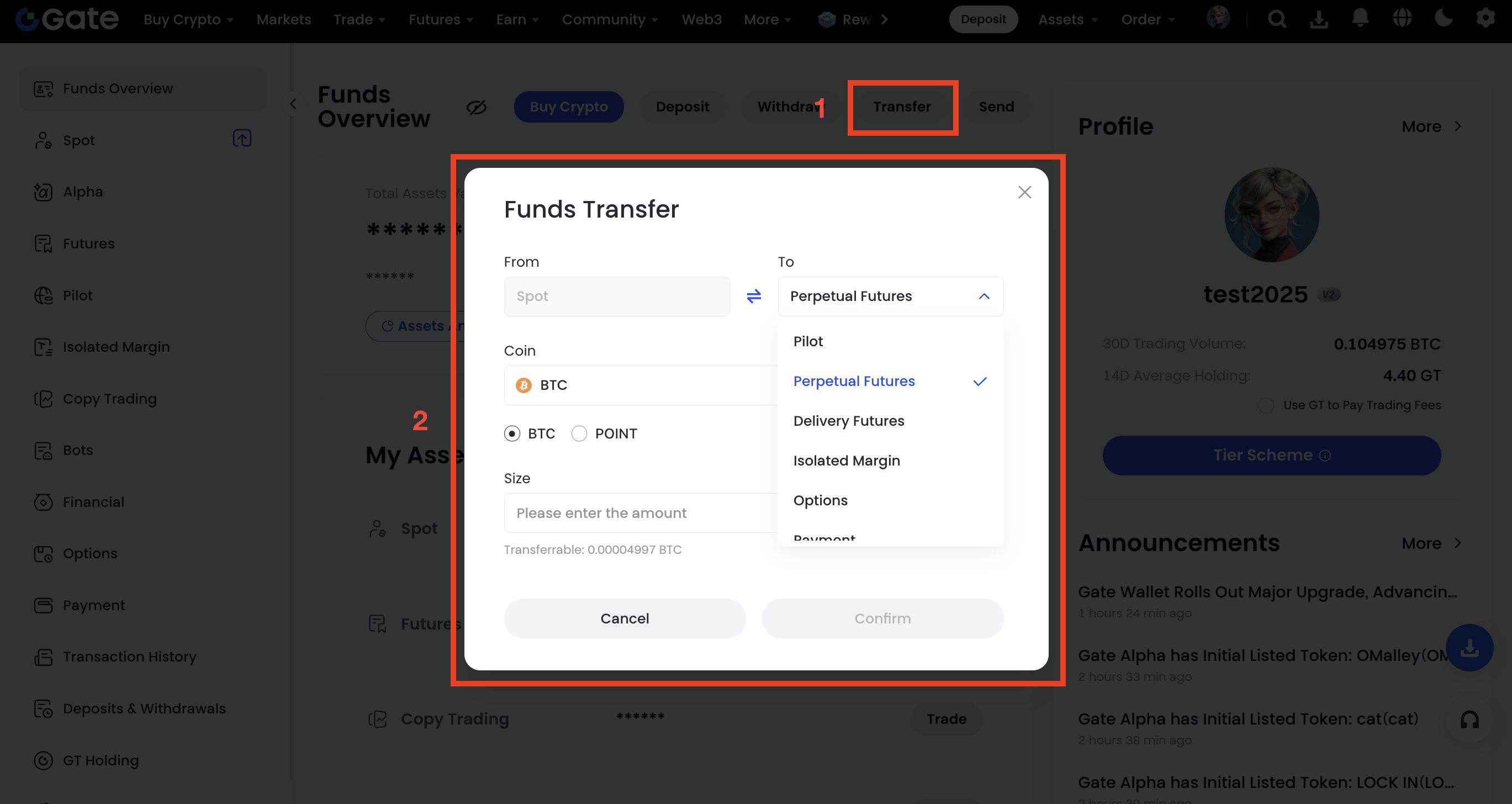Gateでウォレット間で資金を移動する方法は?