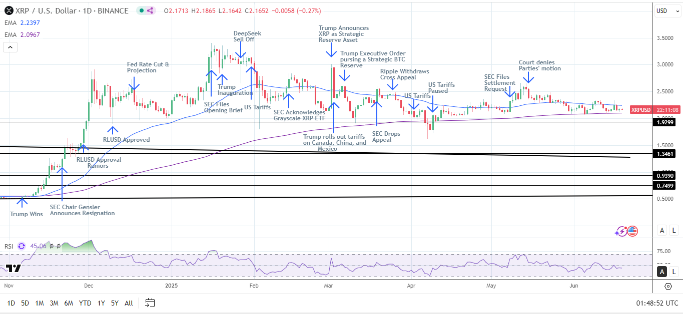 FXEmpireのアナリスト、ボブ・メイソンは、最近のXRPの価格動向はトレス裁判官の和解判決およびXRP現物ETF市場の進展に依存していると述べています。