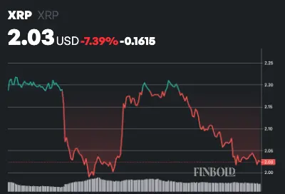 記事執筆時点で、XRPは$2.03で取引されており、過去24時間で約1.8%下落、週足では7%以上下落しています。