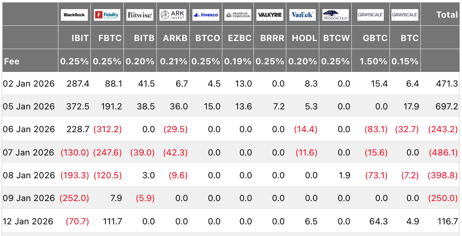 3日間のストリーク期間中、現物ビットコインETFは17億ドル以上を集め、1月6日~9日の約14億ドルの流出をオフセットした。