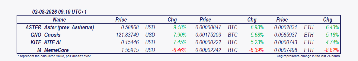 #### 過去24時間で最も動いたトークンとコイン:**09:00 CET – モーニングパルス:安定した回復後に市場が利益を統合 – 本日のトップモーバー*** **アスター(旧アステルス)とKITE AI:** 深夜以降、アスター(旧アステルス)は4.72%、KITE AIは4.12%上昇。**概要:** 市場は現在、前回の安値からの強力かつ一貫した反発を経て安定化の段階に入っています。夜間にピークを迎えた持続的な上昇トレンドの後、価格動向は横ばいの統合パターンに移行しています。即時の攻撃的な勢いは冷めているものの、市場は最近の利益のかなりの部分を維持しており、参加者が最新の動きを消化しながら均衡の期間を示唆しています。🔍 **市場インサイト:** 24時間のデータは広範な回復を反映しており、総合指数やビットコイン、イーサリアムなど主要資産は約2%の上昇を記録しています。特に、イーサはこの期間中にビットコインを上回り、エコシステム全体のリスク志向の回復の兆しを示しています。ただし、日中のセクター別パフォーマンスは質への逃避を明確に示しており、ブルーチップセクター(NWSBE)は深夜のリセット以降唯一プラス圏を維持しています。一方、ニッチセグメント(NWSOT50)は再び圧力に直面しています。これが安定化の兆しである可能性もありますが、歴史的パターンはこの静かな期間が急激な動きの前触れであることを警告しています。上昇の進展が停滞しているため、サポートレベルがしっかりと維持されない場合、市場は下落ブレイクのリスクにさらされる可能性があります。**NWSBCT(ブルーチップ指数):** NWSBCT指数はチャート上で建設的なテクニカルリカバリーを示しています。昨日約5.46で明確な底を見つけた後、指数は早朝に抵抗レベルの5.67までピークを迎えた上昇チャネルを確立しました。その後、浅い調整を経ていますが、5.60付近で信頼できるサポートを見つけているようです。指数がこの新たなサポート棚の上に留まる限り、技術的な構造は安定しています。*このアップデートは、CET午前9時までの過去24時間の市場活動をカバーしています。トップモーバーには24時間のパフォーマンスが含まれますが、主な焦点は深夜以降最も大きな変化を示した資産にあります。**2100NEWSインデックス**は00:00から9:00 CETまでの変化を示しています。**2100NEWS総合指数(NWST1100)**とビットコイン&イーサセクションは、報告時間に関係なく常に完全な24時間の変化を反映しています。公開以降に状況が変わっている可能性もあります。ビットコインとイーサのパフォーマンス分類(重要、わずか、または類似)は、その過去のボラティリティの統計分析に基づいています。**補足ノートは、これらの特定の暗号通貨と指数をハイライトする基準を詳述しています。*** **アスター(ASTER)**| || --- || *2100NEWSランキング:57、Large-cap非Ethereumトークン、インデックスメンバー:NWST1100、NWSL100、NWSTo100、NWSOT50、NWSDM100* || ***2100NEWS DA Orderbook Quality Evaluation Grade:** Poor, Score: 9.5(Large-capsの平均:17.1)* |アスターは、次世代の分散型取引所であり、永久取引とスポット取引の両方を提供し、グローバルな暗号通貨トレーダーのためのワンストップオンチェーン会場として設計されています。**Gnosis(GNO)**| || --- || *2100NEWSランキング:133、Mid-cap Ethereumベースのトークン、インデックスメンバー:NWST1100、NWSM200、NWSTo100、NWSET100* || ***2100NEWS DA Orderbook Quality Evaluation Grade:** Poor, Score: 9.4(トークンの平均:14.8)* |GnosisはEthereumプロトコルに基づく分散型予測市場です。Gnosisは、誰もが結果を予測できるオープンプラットフォームを提供し、カスタマイズされた予測市場アプリケーションの作成を大幅に簡素化します。同時に、Gnosisはブロックチェーンの信頼性とスマートコントラクトの自動実行の特性を活用し、プレイヤーがより柔軟かつ自由に予測市場に参加できるようにしています。将来的には、gnosisの参加者は自然人である必要すらありません。モノのインターネットでは、センサーによって収集された情報も簡単にブロックチェーンに情報資産として入力でき、取引に利用されます。**Kite(KITE)**| || --- || *2100NEWSランキング:175、Mid-cap Ethereumベースのトークン、インデックスメンバー:NWST1100、NWSM200、NWSET100* || ***2100NEWS DA Orderbook Quality Evaluation Grade:** Poor, Score: 8.8(Ethereumベースのトークンの平均:14.1)* |Kite AIは、エージェントインターネットの基盤となる取引層を構築しています:AIエージェントが人間の意図に沿って動作・調整できる世界です。そのインフラは、リアルタイム支払い、プログラム可能なガバナンス、暗号化されたアイデンティティ、検証可能な帰属を可能にし、すべてAI専用に構築されたブロックチェーン上で行われます。エージェントが安全かつ独立して行動できるために必要なコア機能を提供することで、Kite AIは相互運用可能なAIサービスのグローバルネットワークの土台を築いています。