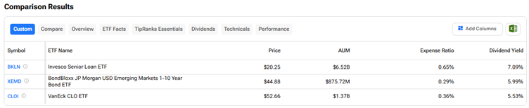 TipRanks’ ETF Comparison Tool gives a snapshot of these ETFs across key metrics.