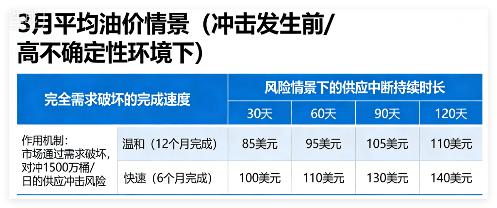 Analysts warn that the longer the disruption lasts and the lower the market’s tolerance for inventory declines, the faster demand destruction must occur, and the higher the peak oil price needs to be. In the most extreme scenario (120 days of disruption + rapid demand response), short-term prices could reach $140 per barrel. If Hormuz flows remain low throughout March, oil prices could even surpass the 2008 record highs.