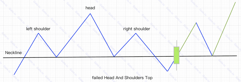 After the price falls below the neckline, it gains strong upward momentum to rise quickly to surpass the neckline again with a green candlestick that day. In such a case, the bullish trend may still continue, so no rush trading actions should be taken.