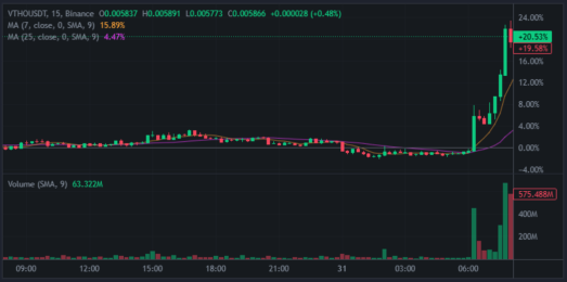 JasmyCoin и VeThor Token**:** Эти криптовалюты выросли заметно за последние 24 часа, с VeThor Token выросла на 19,52% с полуночи.