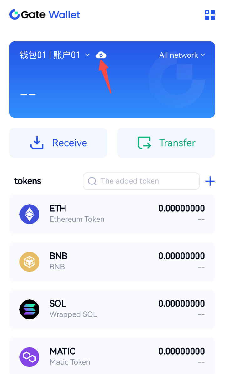 Cüzdanı oluşturduktan sonra, cihazları değiştirirken varlıklarınızı kaybetmemek için lütfen aşağıdaki şekilde bulut yedekleme için gösterilen konuma tıklayın.