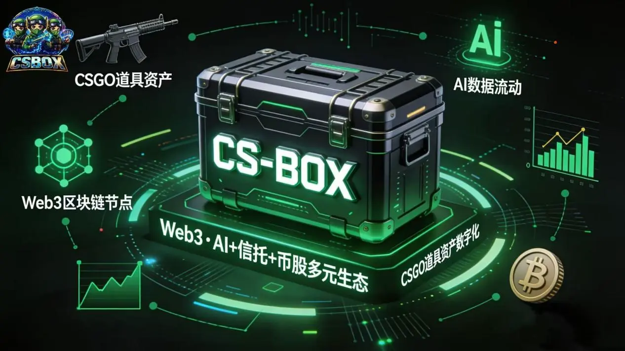CS-BOX позиціонується як протокол ігрового фінансування, побудований на блокчейні, що базується на реальних активів у CS:GO, з екосистемою відкритих кейсів Web3, щоб створити першу в галузі платформу для торгівлі ігровими активами на блокчейні. Її сфера діяльності охоплює сфери AI, трастів та криптоакцій. Платформа зосереджена на технології блокчейну як основі, орієнтуючись на ефективний та відповідний регулюванню обіг цифрових активів, створюючи міжнародну професійну систему послуг, що об’єднує завантаження активів у блокчейн, підтвердження прав, торгівлю, обмін цінностями та розвиток екосистеми.