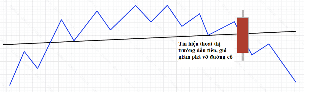 1.Trong thao tác giao dịch, khi giá tiền xuống dưới đường cổ, bạn cần rời khỏi thị trường. Điều này là một tín hiệu thoát khỏi đỉnh rất quan trọng. Chúng ta gọi một đường thẳng đi qua điểm thấp nhất nhiều nhất là đường cổ. Như được thể hiện trong hình dưới đây: