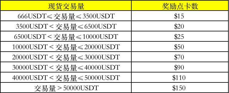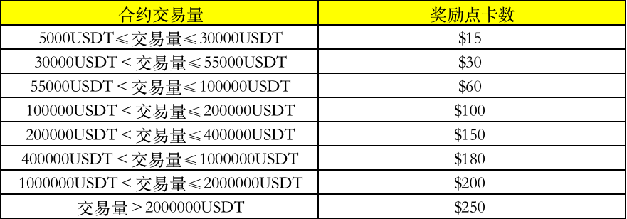 活动详情:用户在填写表单报名之后,完成相应等级的合约或者现货的交易量,即可获得对应等级的奖励,总奖池$10000,数量有限,先到先得哦!活动任务如下:
