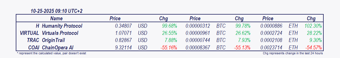 在過去24小時內波動最大的代幣和幣: