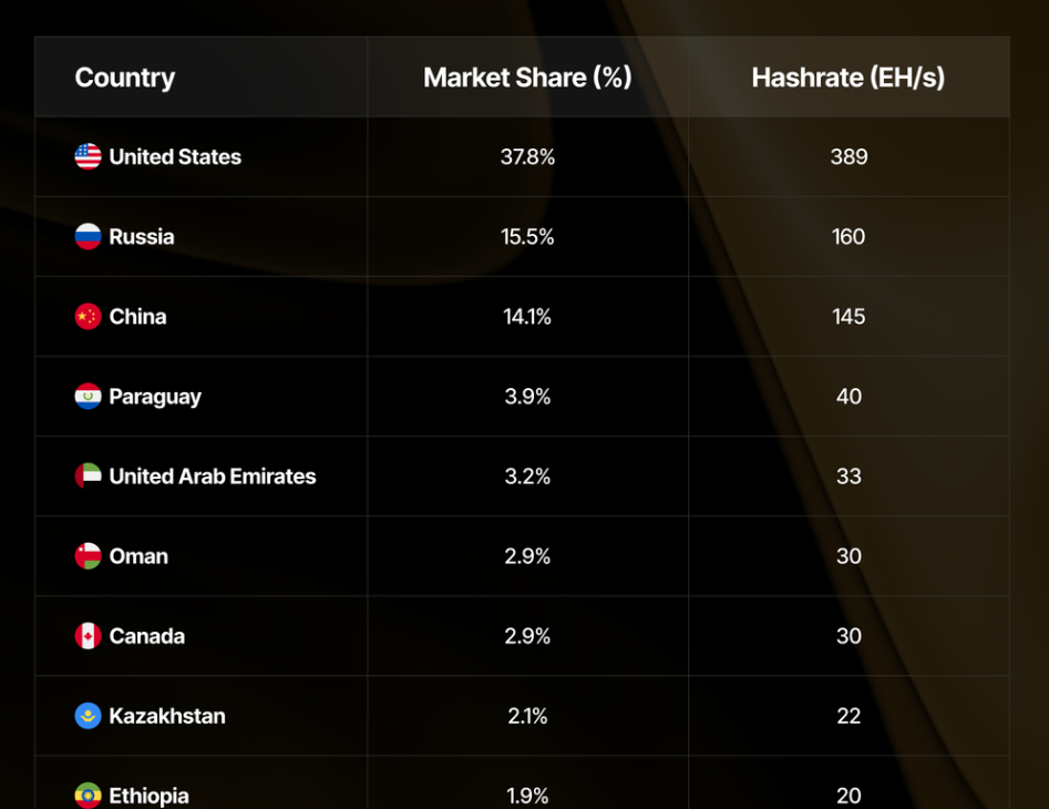 美国拥有全球大量的矿业算力。比特币矿业数据平台Hashrate Index估算,该国控制了全球近38%的算力。